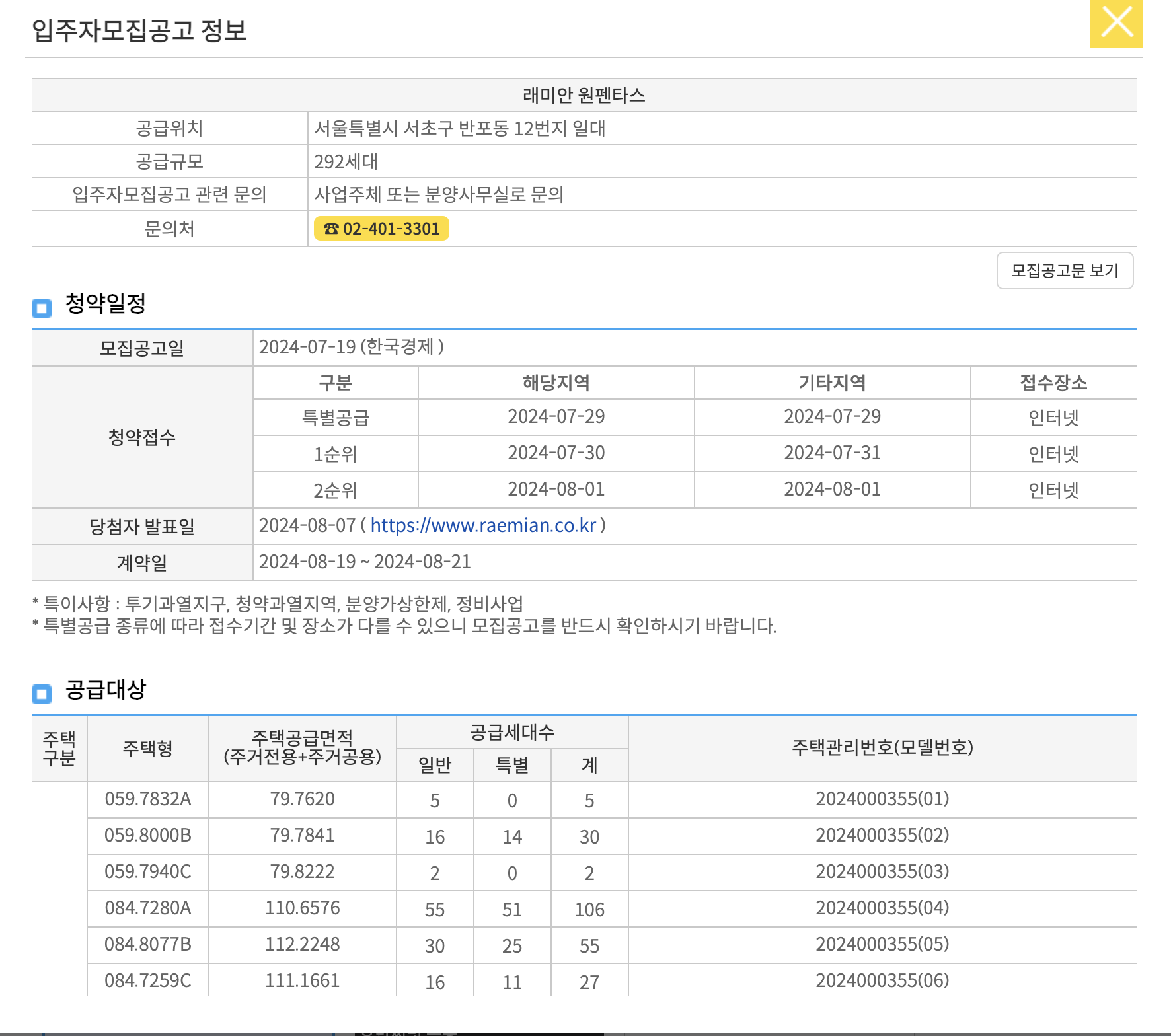 - 특별공급 접수일 : 7월 29일