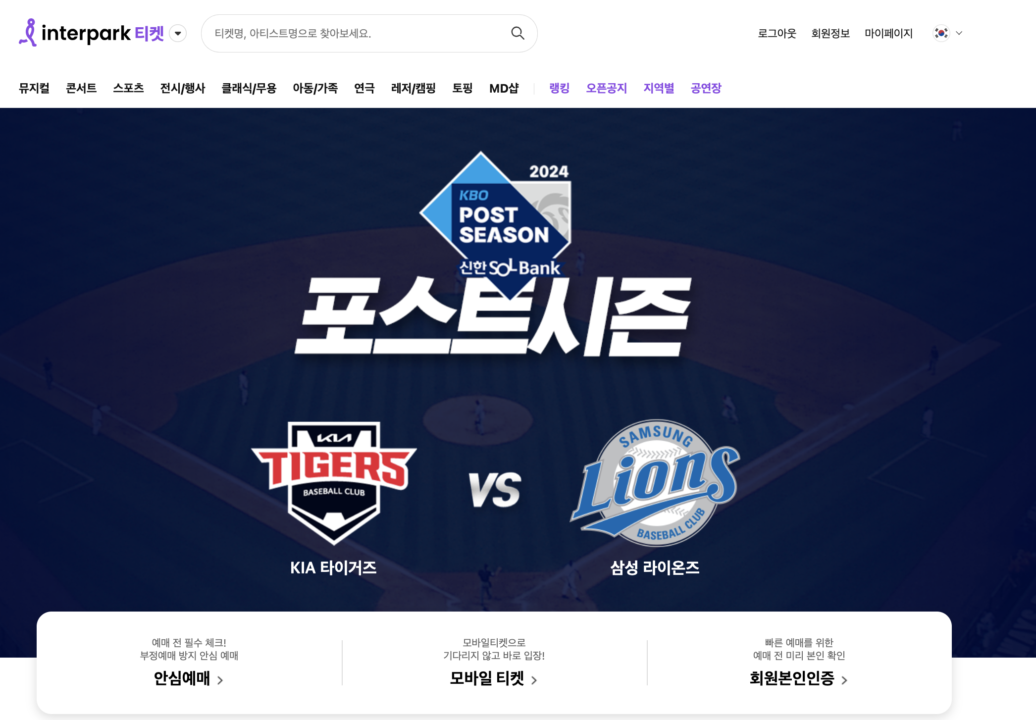 한국시리즈 예매는 인터파크티켓에서 단독으로 할 수 있으니 참고하시길 바라요 :)