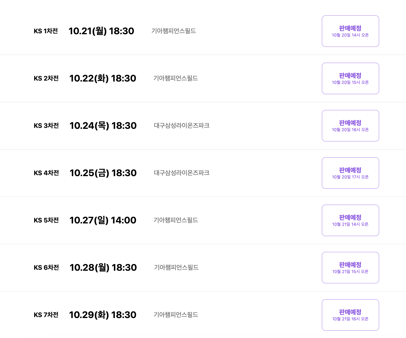 - 7차전 예매 : 10월 21일(월) 16:00~